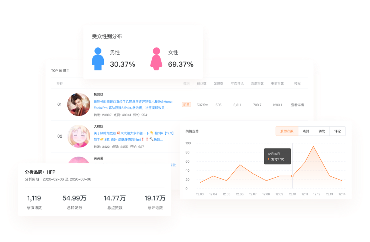 洞悉品牌及競(jìng)品傳播概況,掌握品牌輿情口碑與營(yíng)銷動(dòng)態(tài),為下一步制定營(yíng)銷策略提供分析依據(jù)